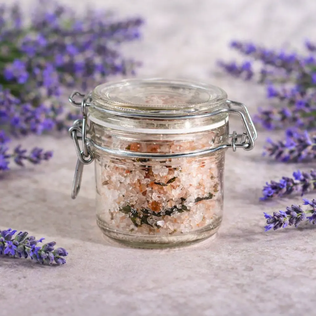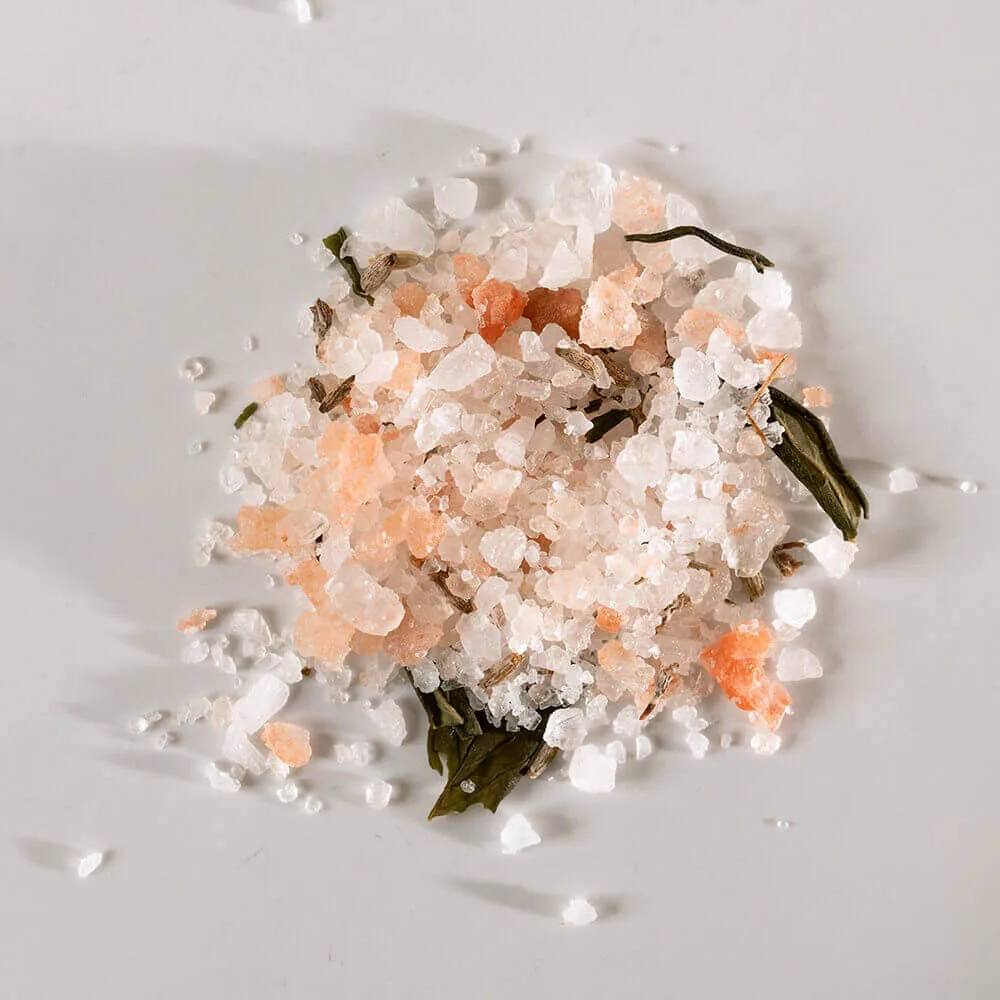 Съставки:Himalayan salt, sea salt, hemp leaves, lavender flowers, lavender essential oil.